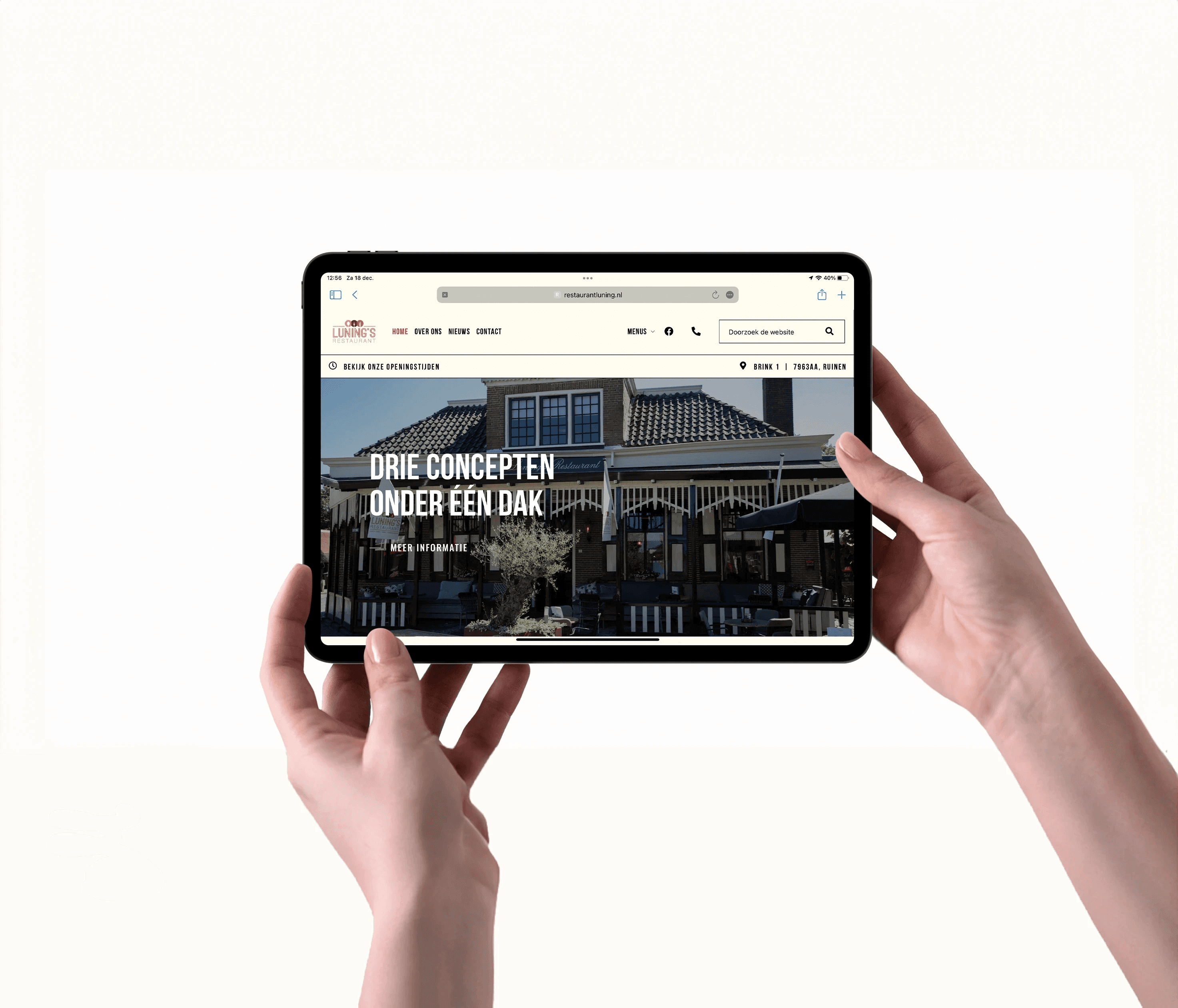 Luning’s biedt veel verschillende concepten onder één dak en zit in een karakteristiek, historisch pand midden op de Brink. Online moest dat verhaal kloppen: duidelijk maken wat je waar kunt eten, zonder dat het onoverzichtelijk wordt, en tegelijk de nostalgische sfeer en gastvrijheid goed overbrengen.